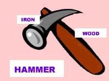 Clay Demonstration ("Clay Demo") The student can do it to clarify something described in the materials for himself and when the checksheet calls for a Clay Demonstration. The checksheet will call for Clay Demonstrations for the most important data, principles, and ideas in the course materials. Clay Demos help give a better balance of mass and significance. They give the student an opportunity to confront, "touch", create, and outflow using the data taught. The student is given a definition, action, or situation to demonstrate. He then does this in clay. He labels each part as he goes along. The clay has to show the thing. It is not just a blob of clay with a long text on a label on it. The student uses small strips of paper for labels. He writes the name of the part on the label and attaches it to the Clay Demo. The whole demonstration then has an overall label of what it is. On the check-out the student leaves the overall label on the table, text down so it can't be read. The student must be silent. He is not allowed to explain or say anything. Unless the person checking it out can see what it is it is not given a pass. The person checking it out is not allowed to ask any questions. He just looks at the Clay Demonstration; he has to be able to figure out what it is by looking at it. He then tells the student before turning the overall label to see if it was correct. If he could not see what it was it is a flunk. Clay Demonstrations must not be reduced to a verbal examination of the student nor to significance by long-winded labels of individual parts. The clay shows it, not the labels. The clay has to demonstrate it. The student must learn the difference between mass and significance. Example: Let's say the student has to demonstrate a hammer in clay (see picture above). He makes the hammer head in a dark gray color of clay. He puts a label "Iron" on it. Then he makes the hammer shaft, using brown or yellow clay. He makes a hole in the hammer head (using a pencil or a special tool) and sticks the one end of the shaft through that. He labels the shaft "wood". Then he writes the overall label "Hammer" and turns it upside down next to the Clay Demonstration. Now the person checking it out is called over. The person checking it out asks no questions and flunks any attempts on the part of the student to start a conversation while he is checking it out. It is done in silence. He looks at it and figures out it is a hammer. He says, "That is a hammer" and turns the overall label. The student is given a pass as the Clay Demonstration showed it clearly enough. If Clay Demonstrations are not brightening up the student they have been done incorrectly. The student may be in such a rush to put aside real learning for the sake of speed. Clay Demonstrations done right , and actually showing what was to be demonstrated, are very effective in helping the student understand the data which will result in the data being retained.